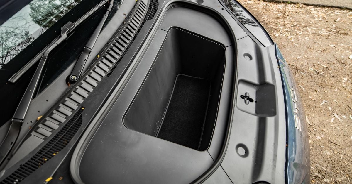 But this car also has a frunk, which is a decent 58-litre capacity. There’s no drainage hole, if that matters, but it’s a great spot to store your charging cables. You get a Mode 2 cable and a vehicle-to-load (V2L) power adapter included, too.