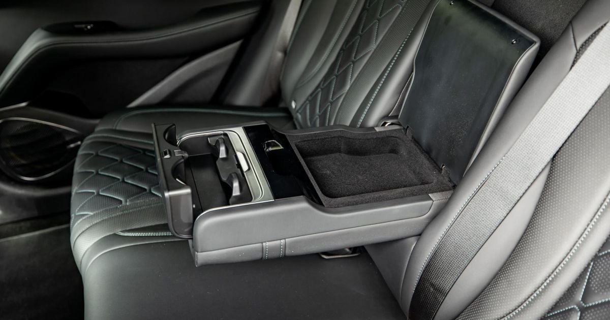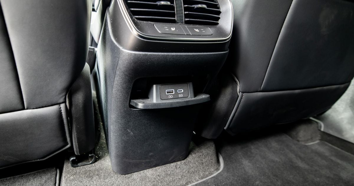 There are directional air vents, decent door pockets, a flip-down armrest with cupholders, and rear-seat riders also get charging ports and ambient lights.