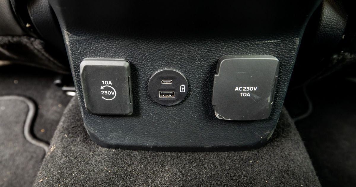 The seat itself is comfy, with a decent level of recline to the backrest, and there are vents for those riding in the back too. Device charging is sorted with a couple of USBs and a powerpoint, and there are also map pockets, a pair of cupholders in a flipdown armrest, and bottle holders in the doors.