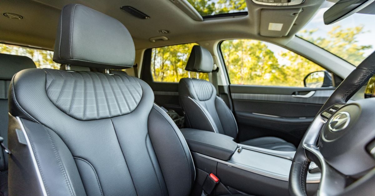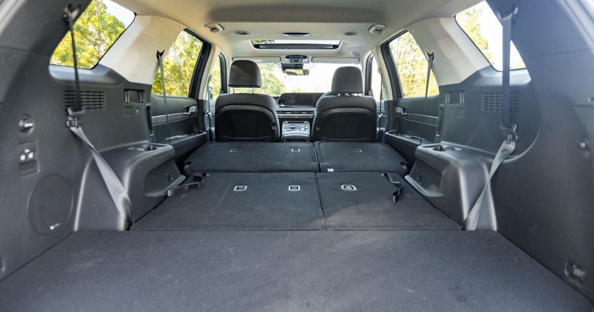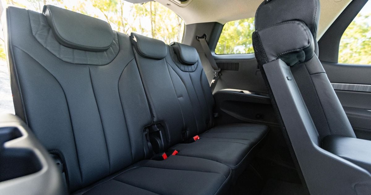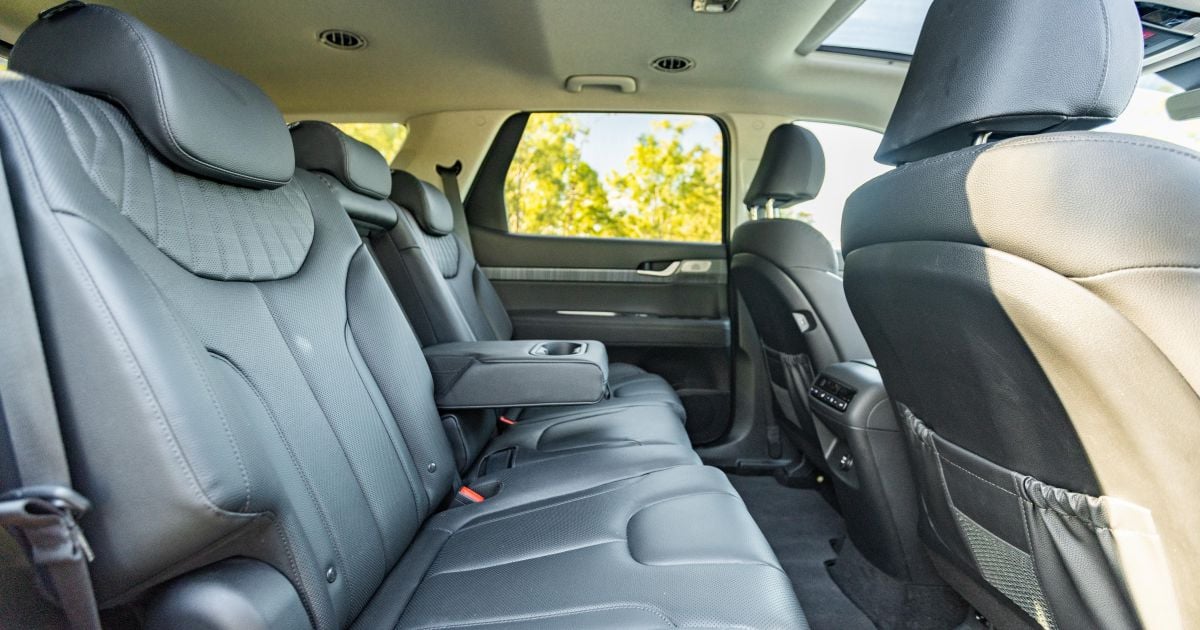 The Palisade has 798mm of third-row legroom, as well as 1402mm of shoulder room and 1111mm of hip room. In contrast, the Santa Fe has 761mm, 1360mm and 1084mm, respectively.