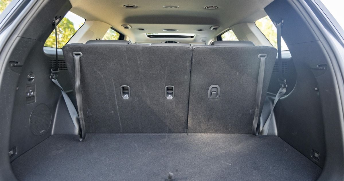 In the boot, there’s a 12V outlet and buttons to drop the second-row seats, which fold almost completely flat.