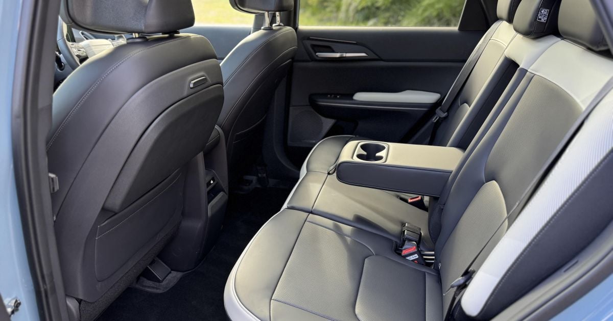 It also has a nice looking two-tone fake leather trim finish, which is a step up, and there’s also better seating for the front riders – the passenger gets power seat adjustment with lumbar, and a massage system. Both front seats include ventilation, too.