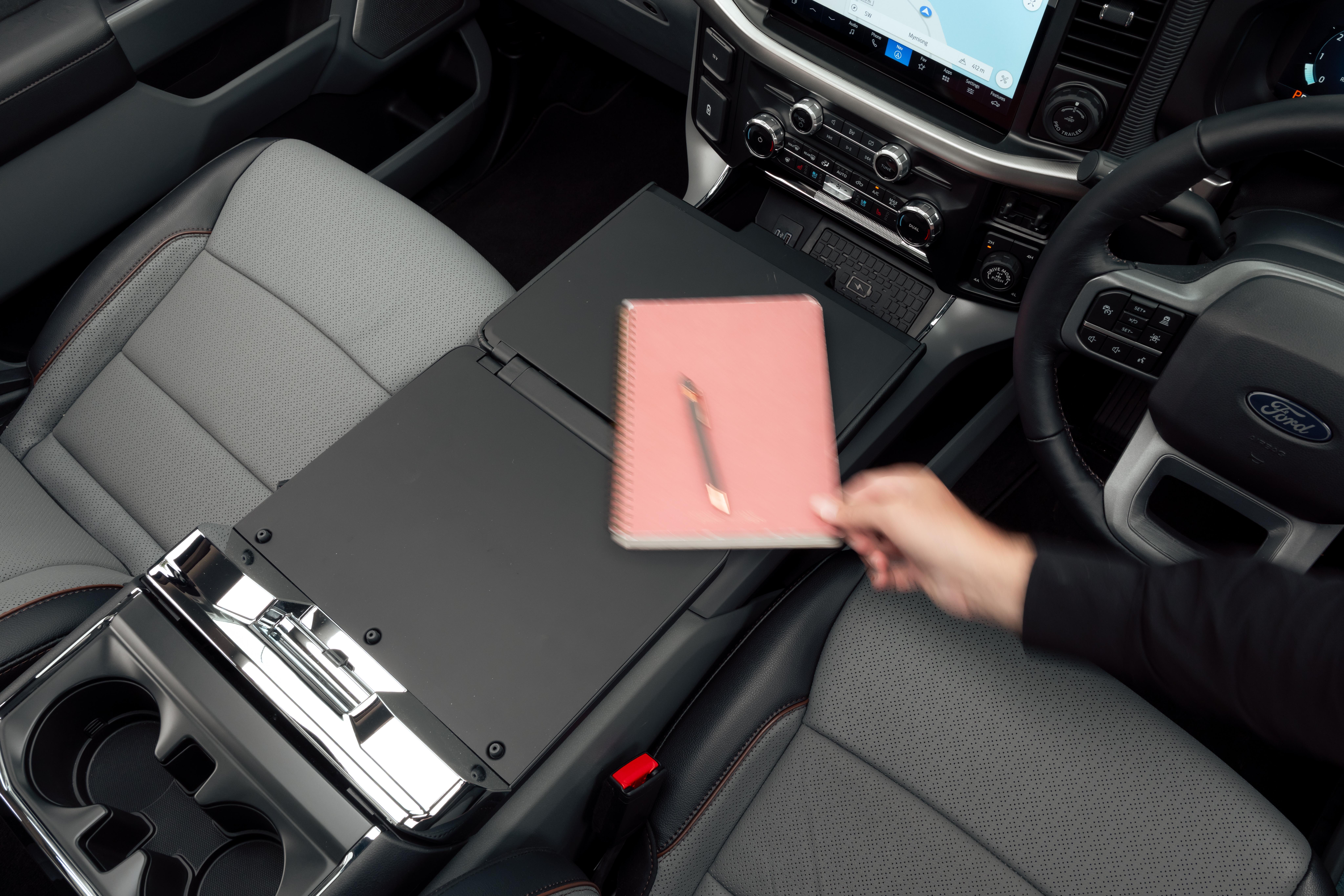 There are also heaps of storage and utility solutions, from the chunky cupholders and storage bins to the reversible centre console armrests that also double as a desk if you need to use a notebook or your laptop on the fly.