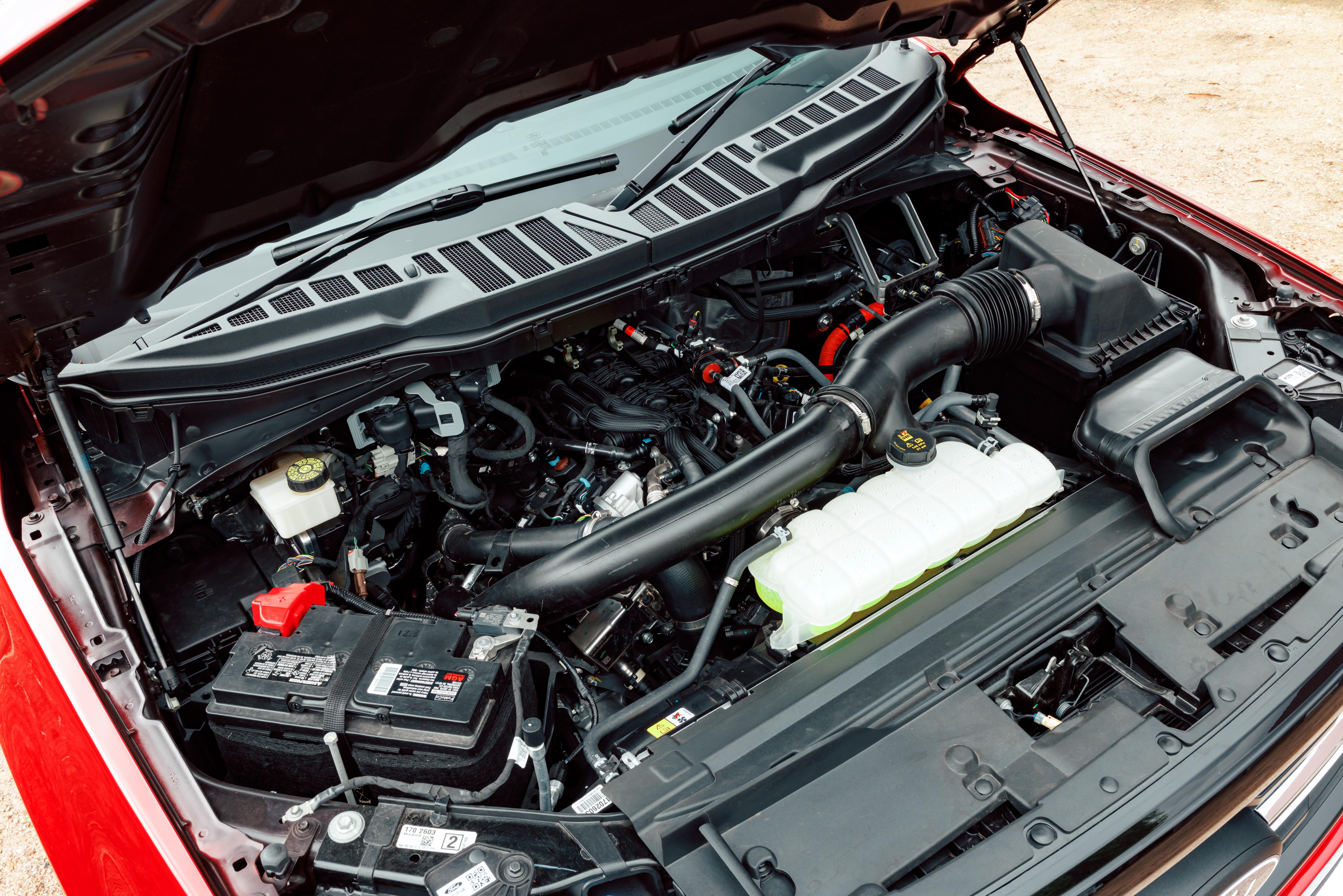 While V8 and ‘Full Hybrid’ versions are available in the States, the Australian-market F-150 is solely available with the 3.5-litre ‘EcoBoost’ twin-turbo V6 petrol engine.