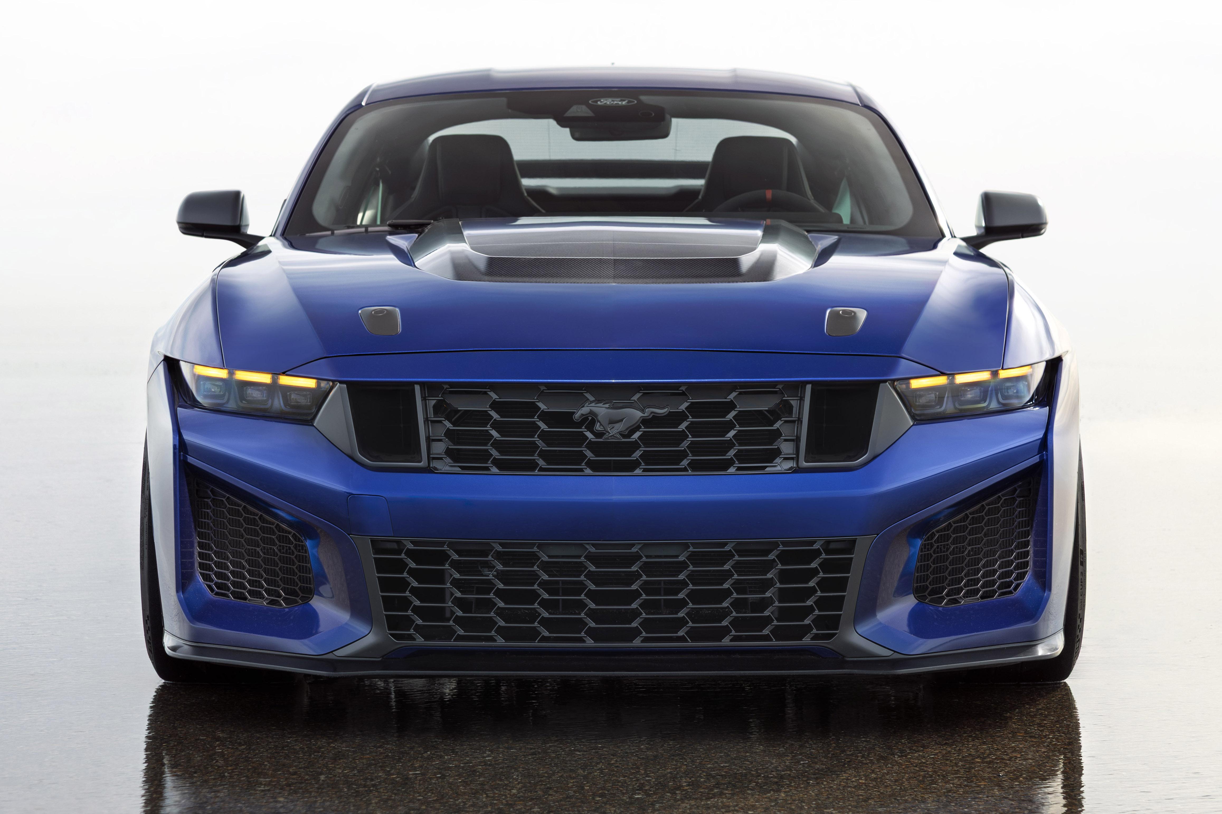 There’s also a new rear diffuser and Ford says a new aluminium bonnet generates 2.5 times the downforce as the regular Dark Horse with the rain tray removed, and that its bonnet vent is five times larger.