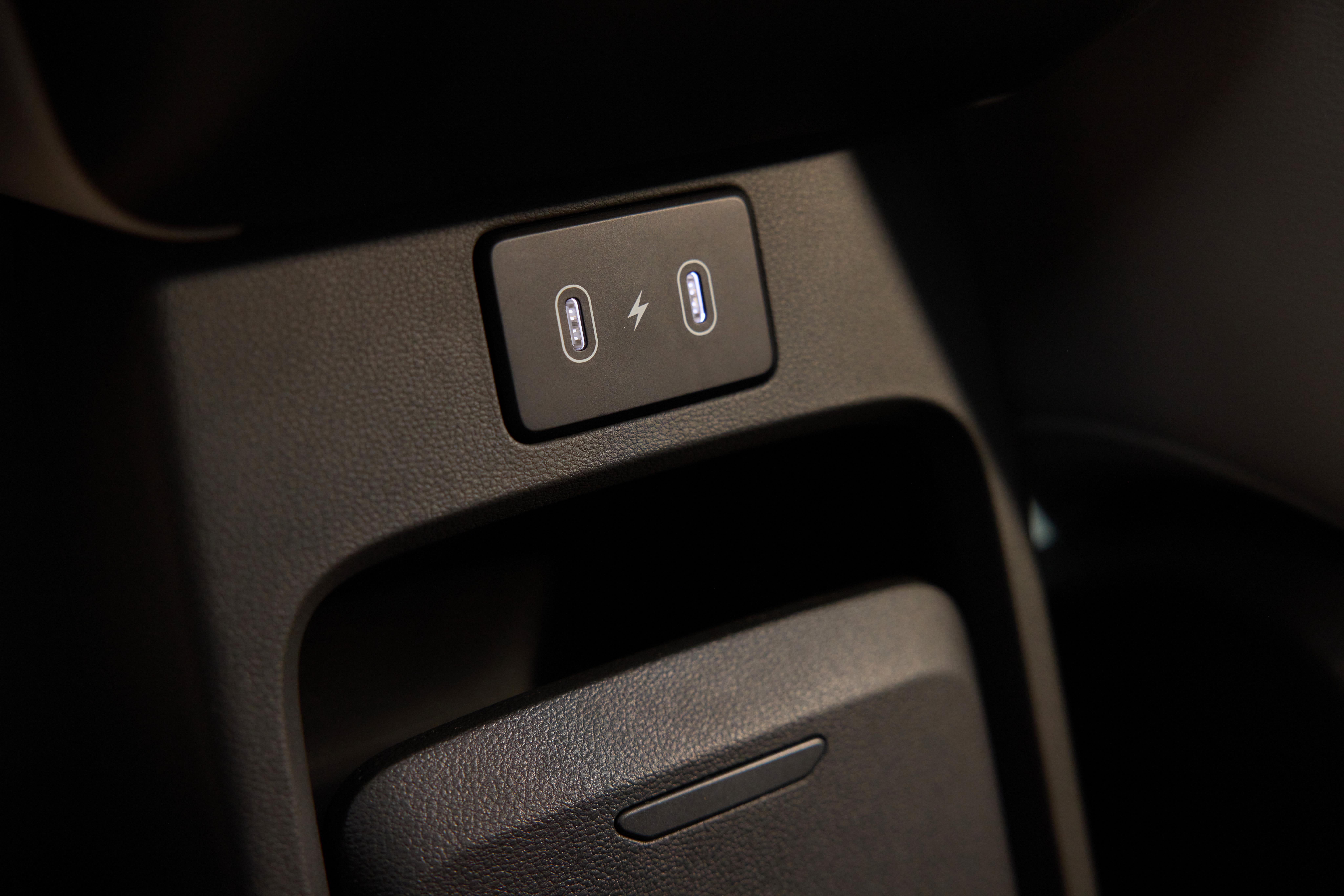 You get rear air vents in the pillars, a pair of USB-C charging ports for phones or portable devices, and little storage pockets behind the front seats and under the aforementioned charge ports.