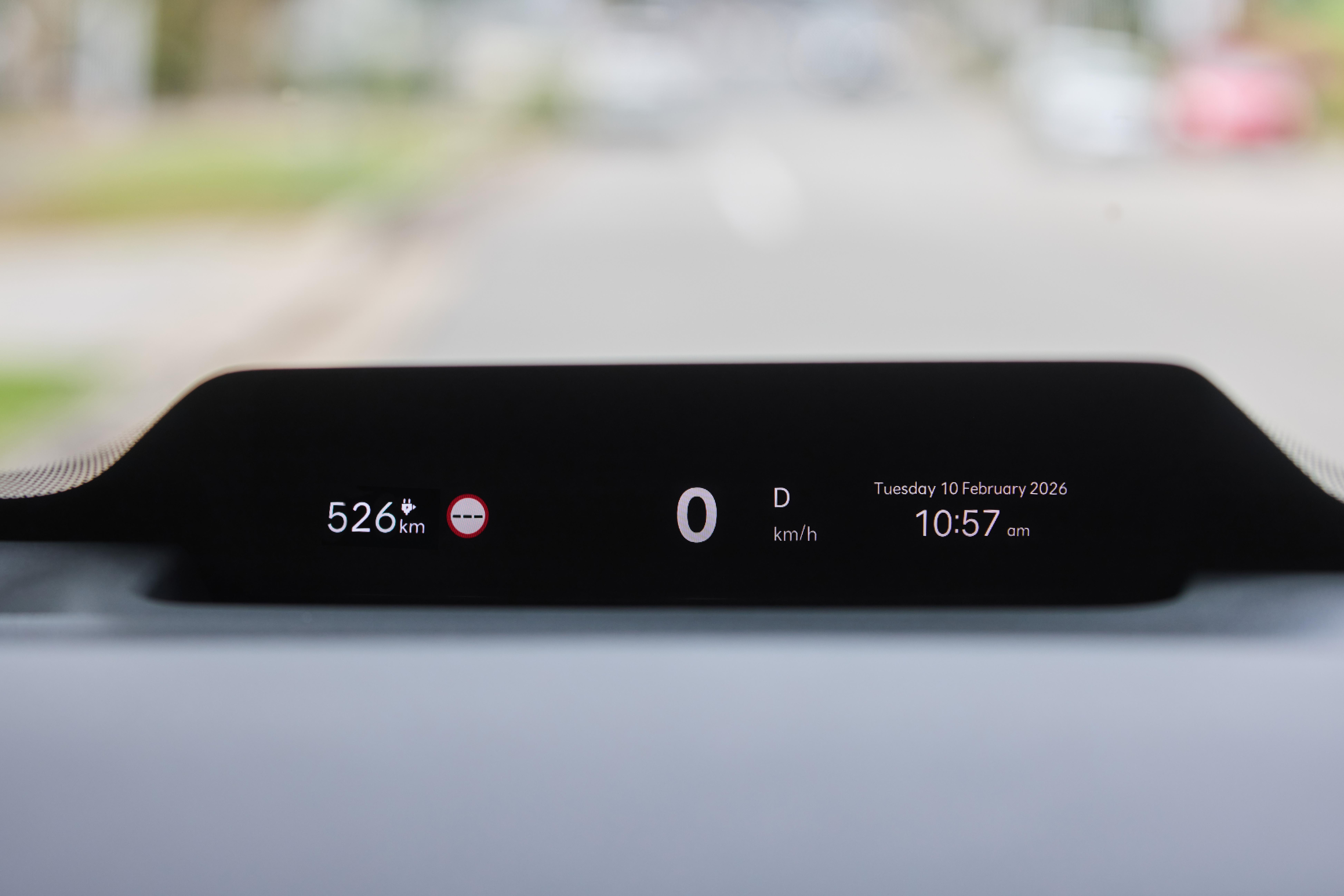 For some reason I thought the simple driver display at the base of the windscreen was an actual screen, but it’s actually a head-up display projection. It’s a neat piece of design and offers a few views for added functionality, but if you wear polarised sunglasses it might get a little hard to see.