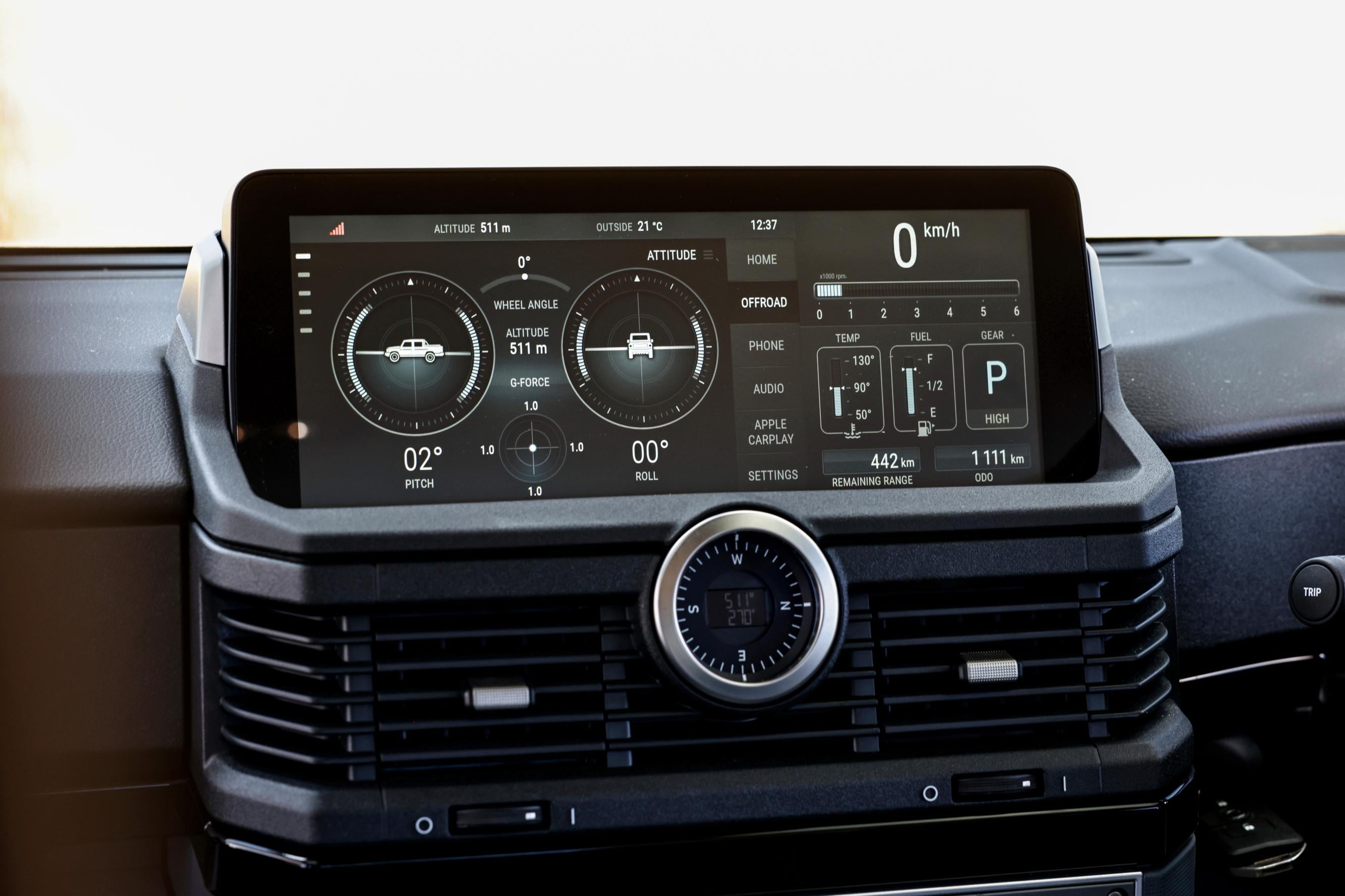 There is some room for complaint when it comes to the cabin technology, though. My biggest gripe is that there’s no driver display or head-up display. Instead, Ineos has followed Tesla by showing speed on the infotainment screen, which leads to distraction during everyday driving. It does, however, make more sense when driving off-road.