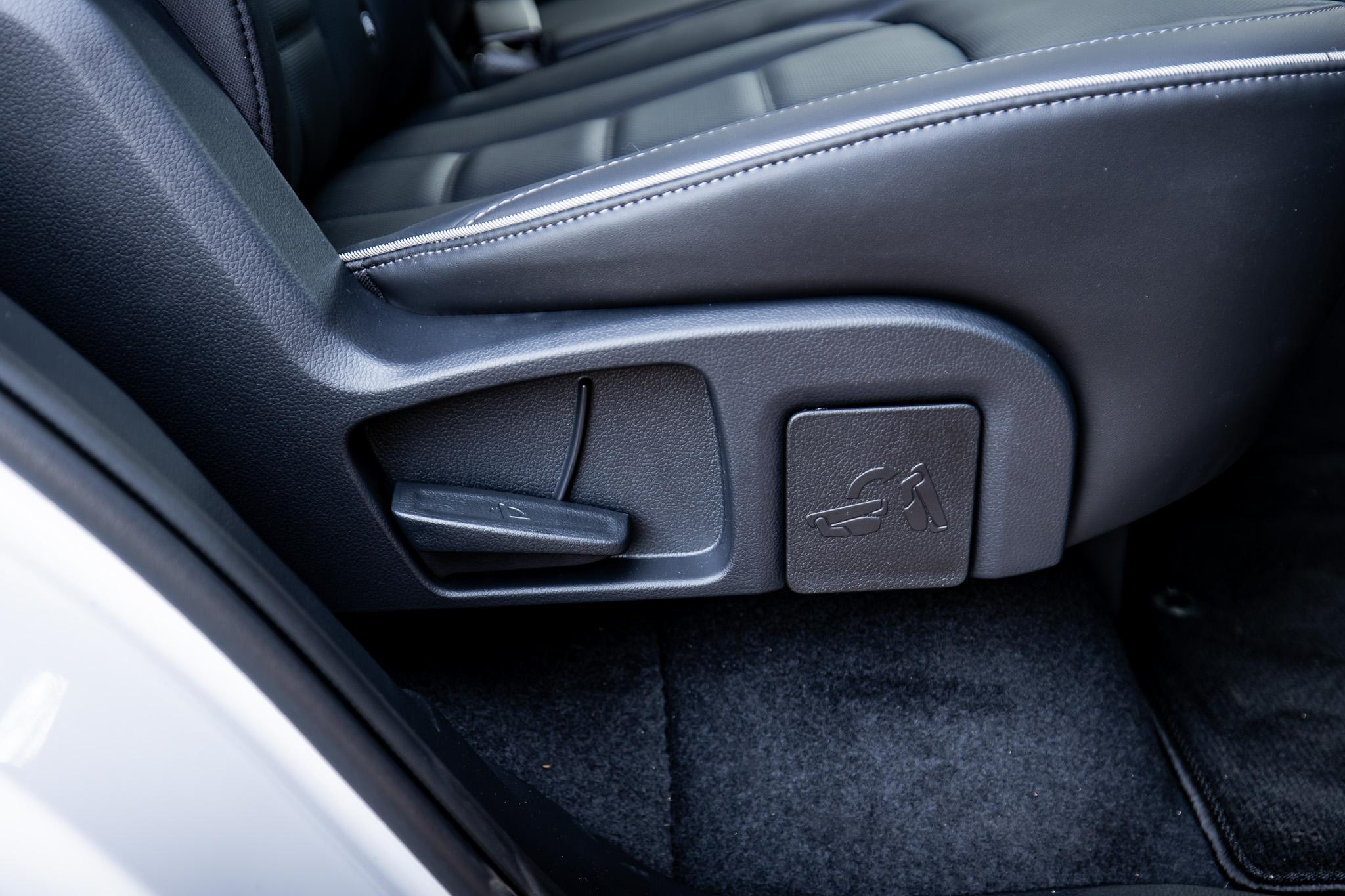When it comes to third-row access, the middle row doesn’t slide to make it breezier to get in, but it does have a flip-tumble system with a two-stage movement, so it can be a handful to manage if you’re less muscular. And with the driver’s seat set to my position, I couldn’t tumble the seat forward without shifting my seat. If you’re using the kerbside for third-row access, be aware that it’s the larger portion of the 60:40-split middle row on that side in Australia, meaning it might be more difficult.