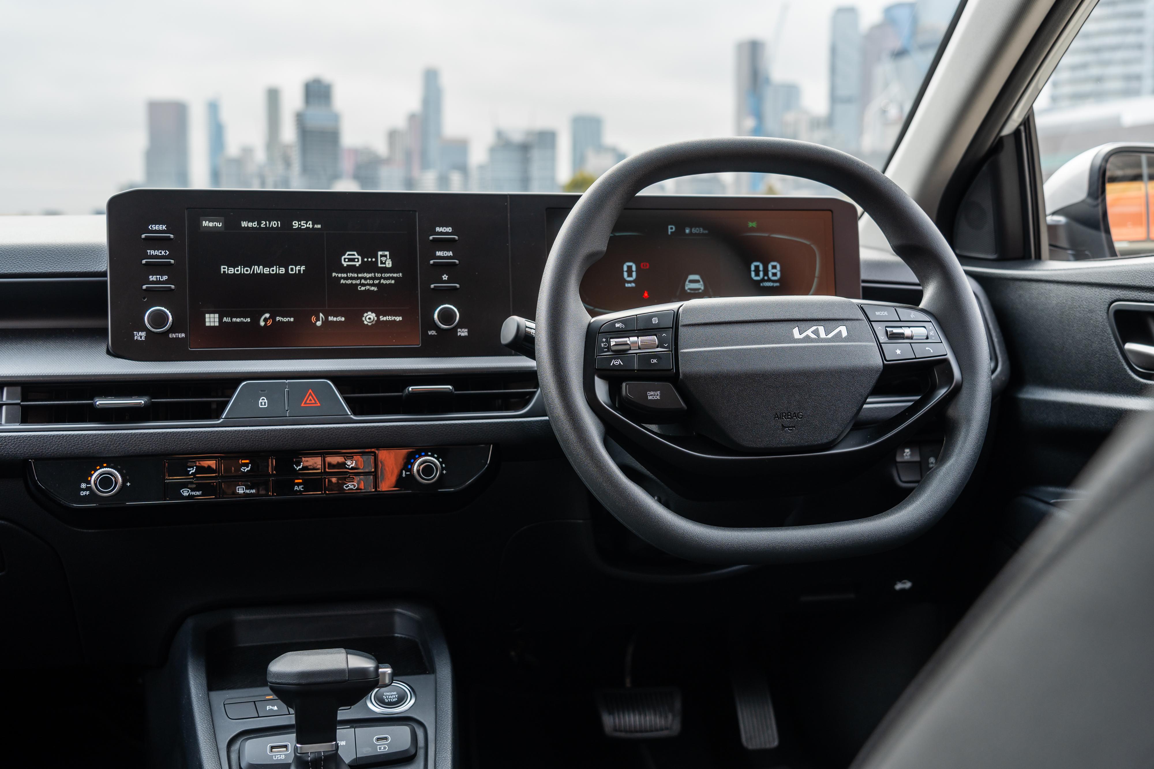 Higher-spec trims feature a three-spoke tiller that’s a bit chunkier, nicer to hold, and better-looking, along with other more luxe items like a larger infotainment display. Mind you, there’s a key quirk with Kia infotainment systems that almost makes you want to opt for the base model.