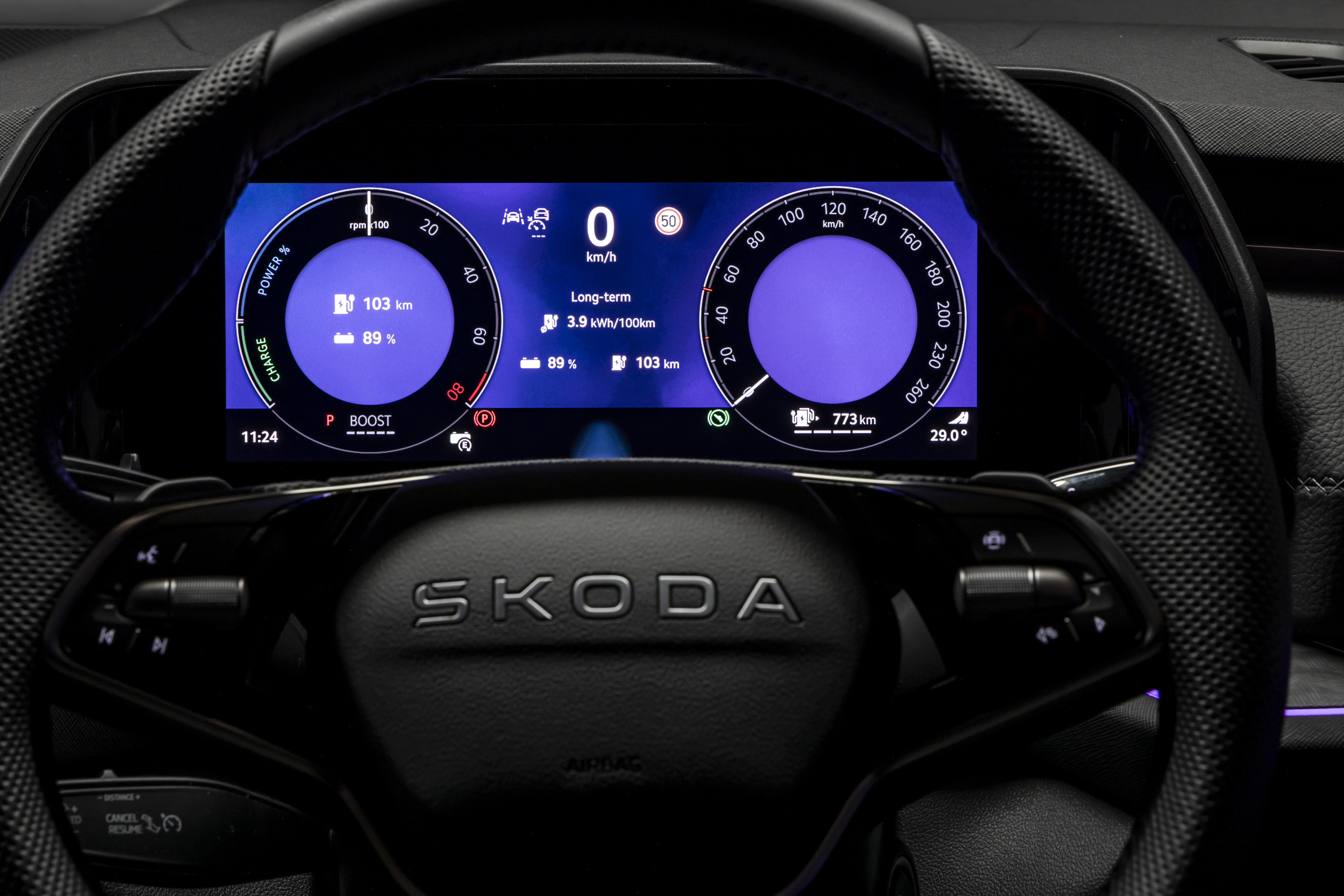 Skoda claims 110km of electric range on the WLTP cycle. For context, Mitsubishi claims an electric driving range of 84km for the updated Outlander PHEV.