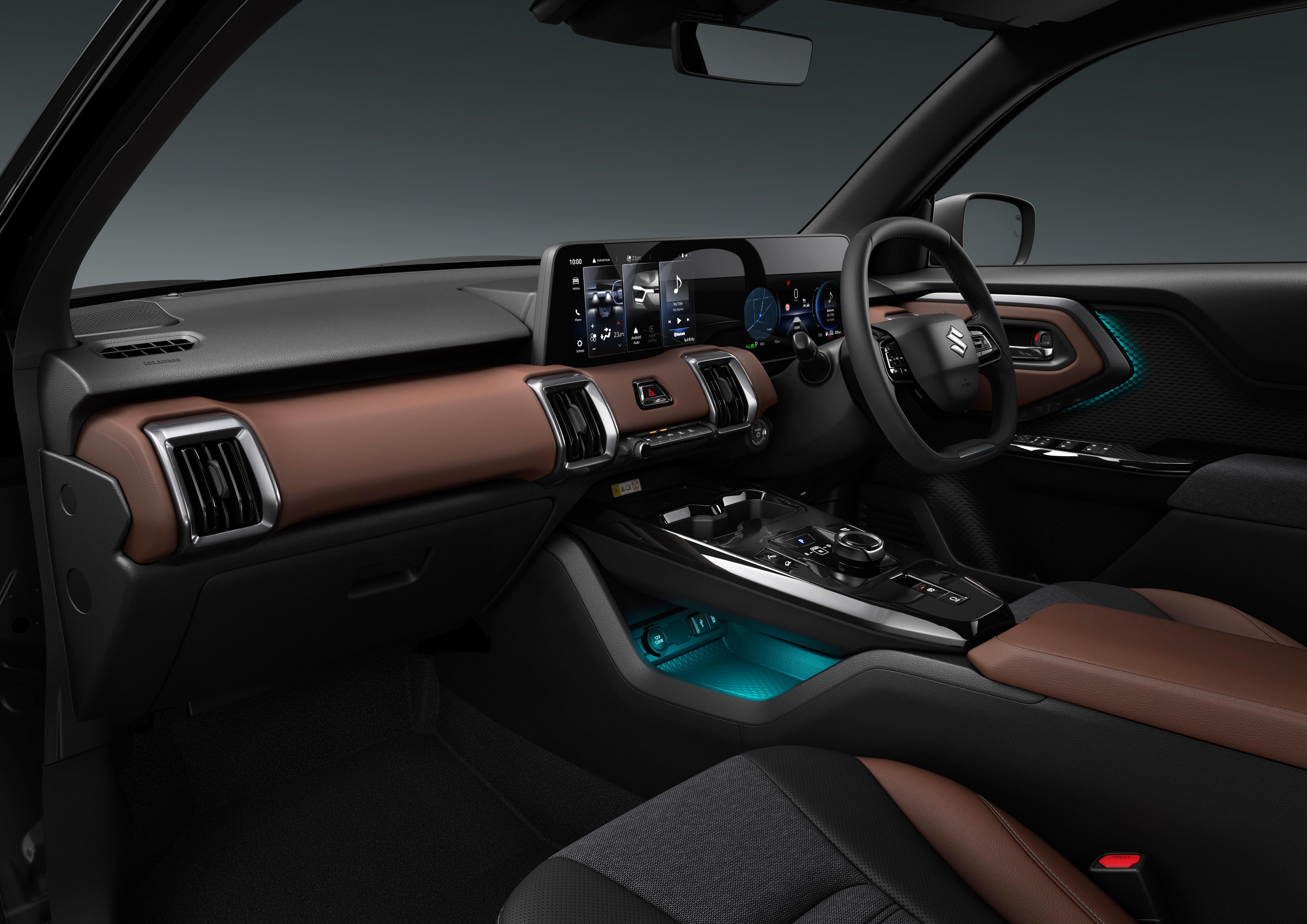 The conjoined 10.25-inch digital instrument cluster and 10.1-inch central media system are standardised across both variants, and feature a new interface compared to other models in the Suzuki stable.