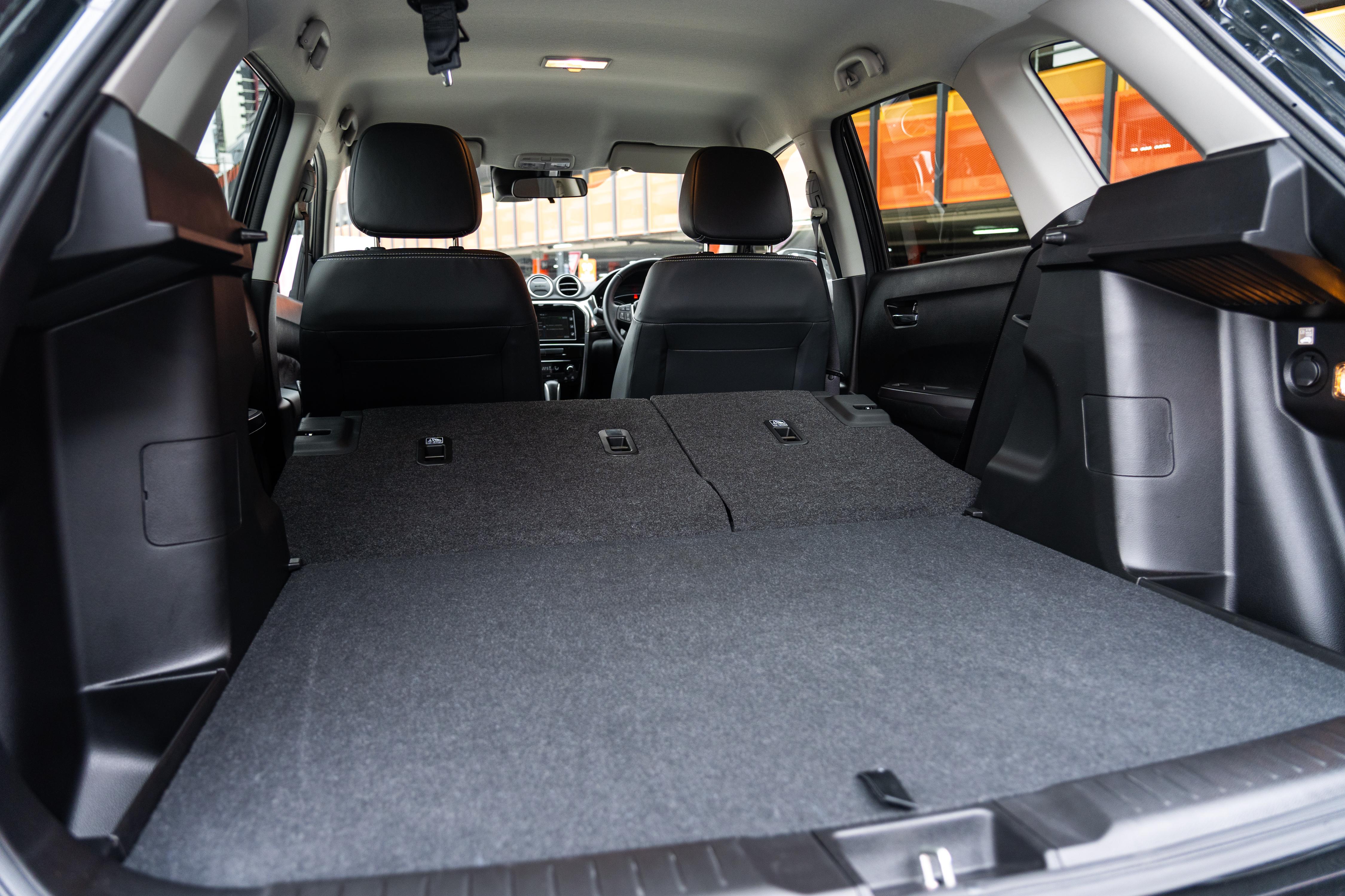 Suzuki quotes 362 litres with the rear seat backs up, and 642L with them folded. There’s also a quoted “maximum” volume of 1119L, presumably measured to the roof. Regardless, it remains on the smaller side in this class.