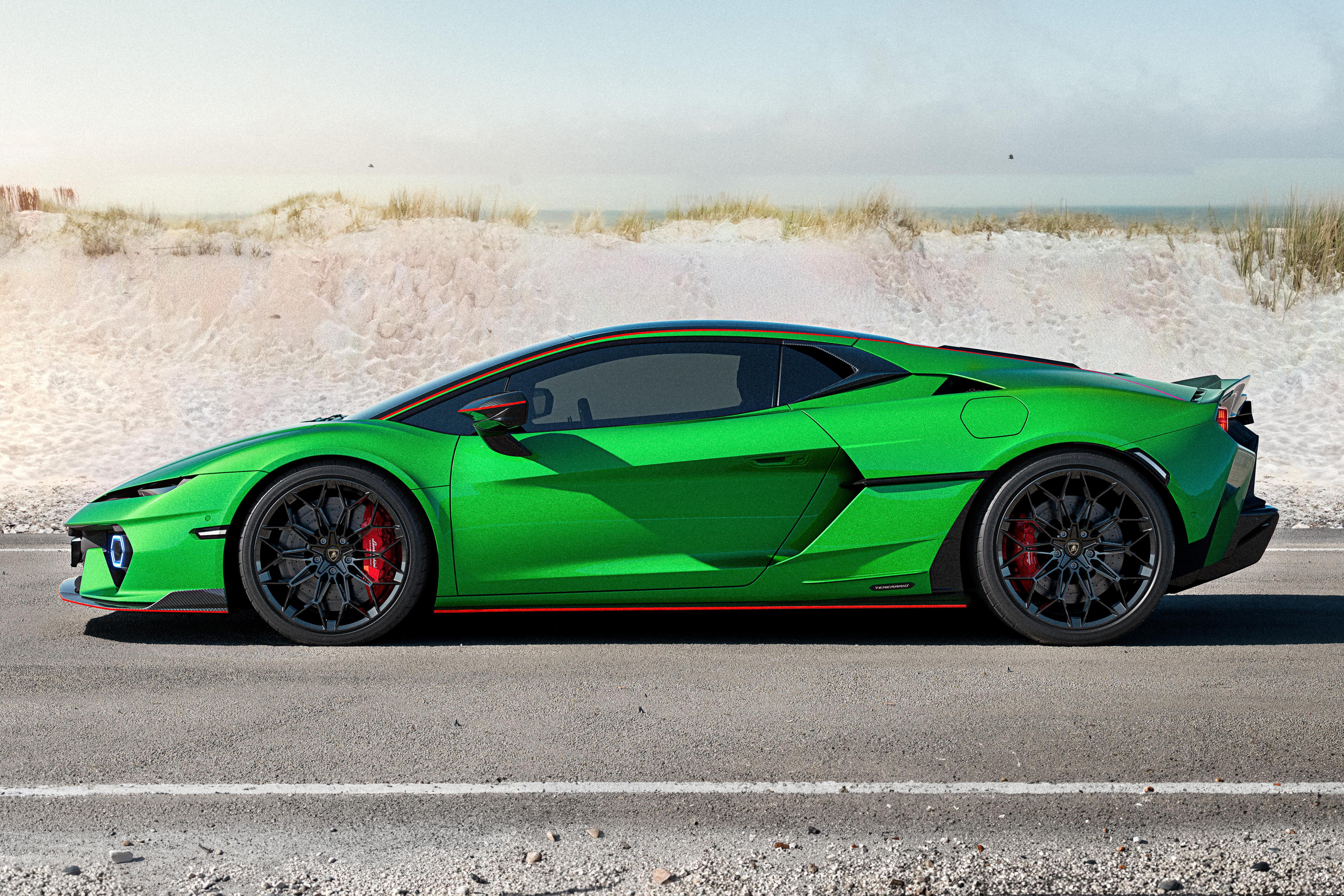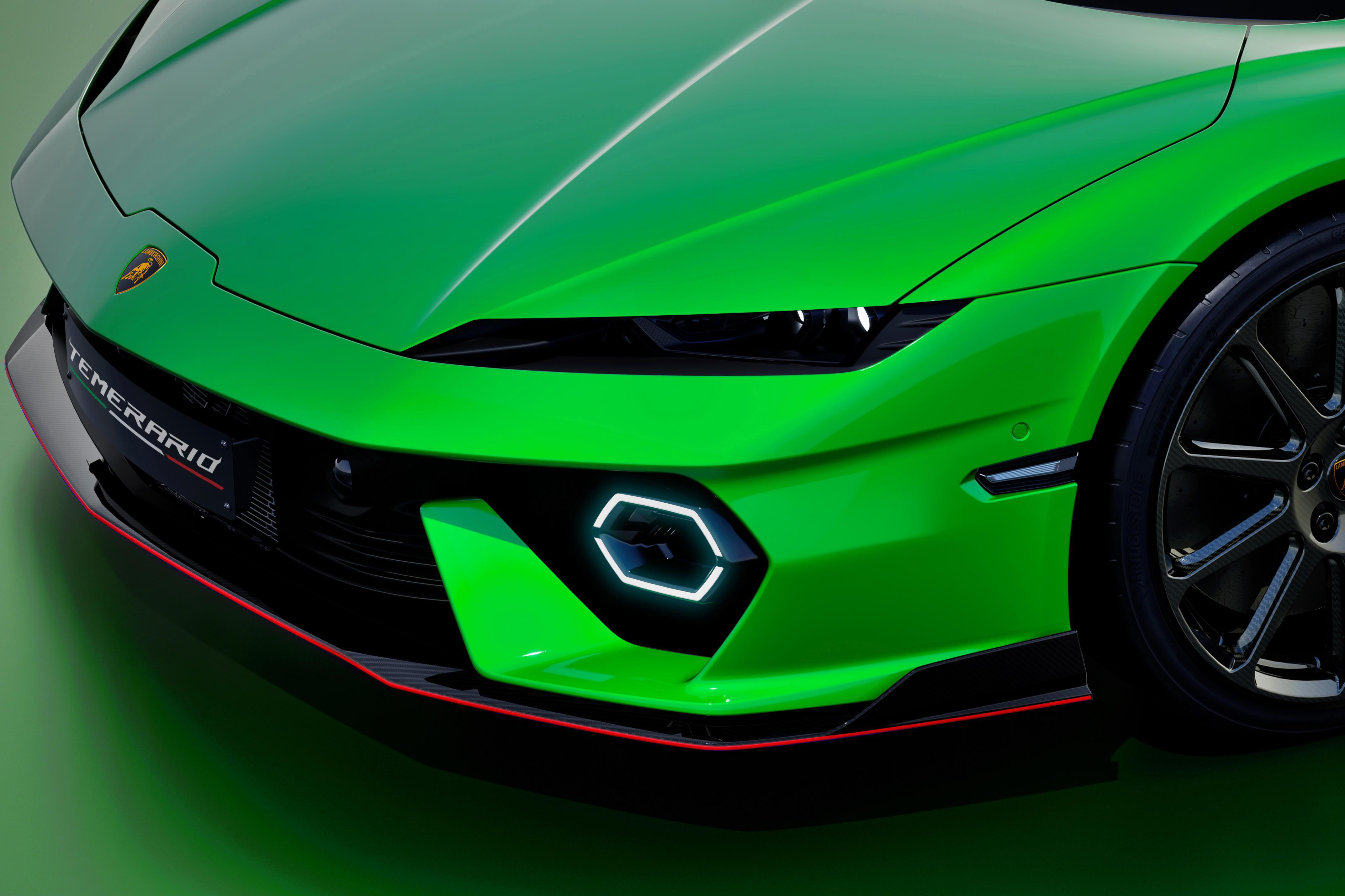 The Temerario’s surfacing is still defined by sharp lines and tension, but with a more human, athletic quality — technical components wrapped in sculpted musculature rather than pure origami aggression.