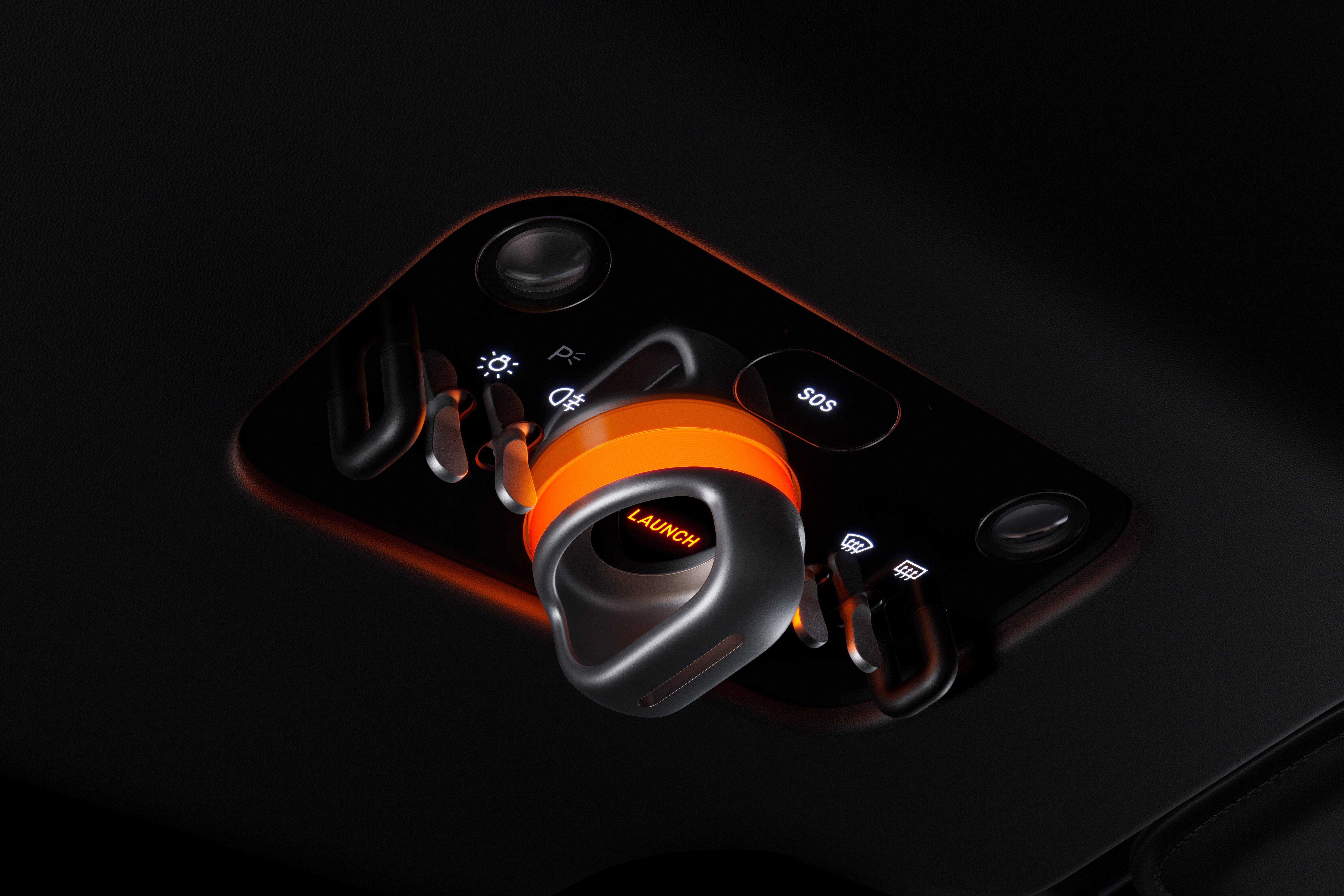 You start the Luce by taking the key, made in Corning Fusion5 Glass with an E Ink display, and inserting it into its dock on the centre console, when the key changes colour from yellow to black.