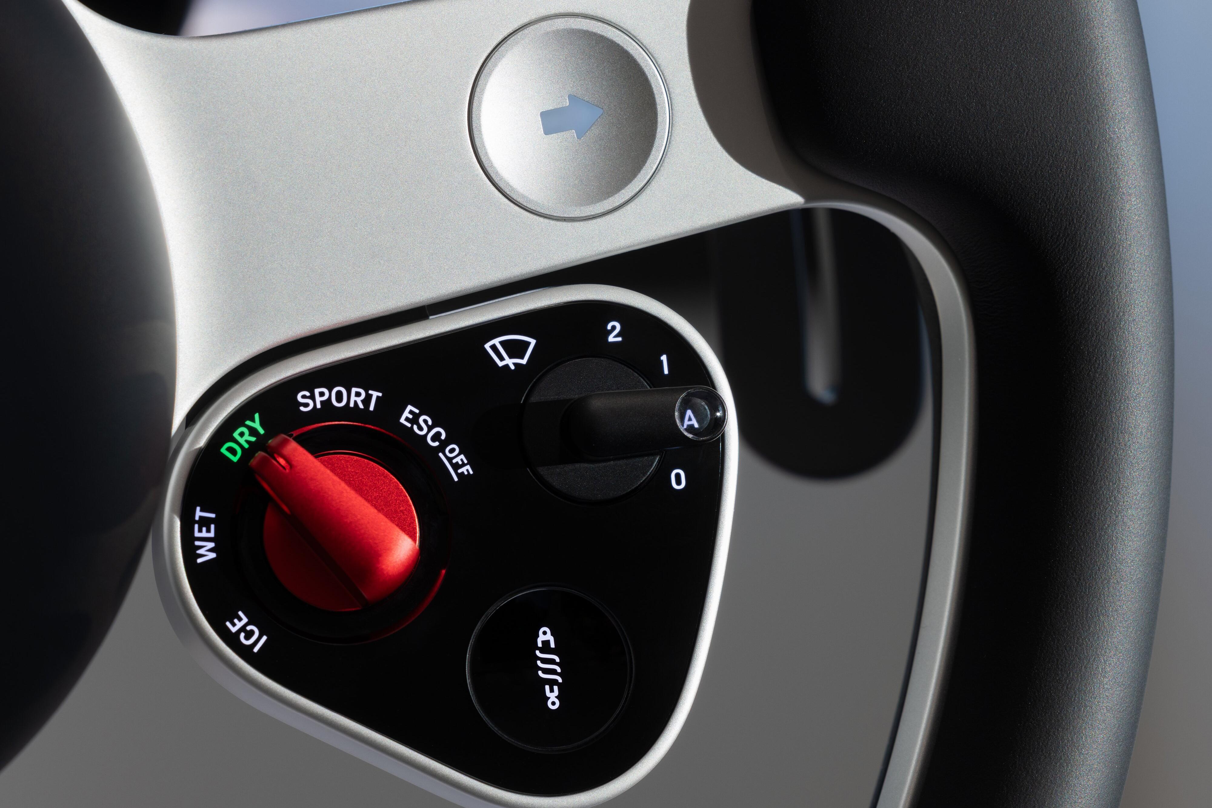 Designers drew inspiration from single-seat Formula 1 race cars for the design of the steering wheel controls, with dials for drive mode and stability control selection, and buttons for functions like the indicators.