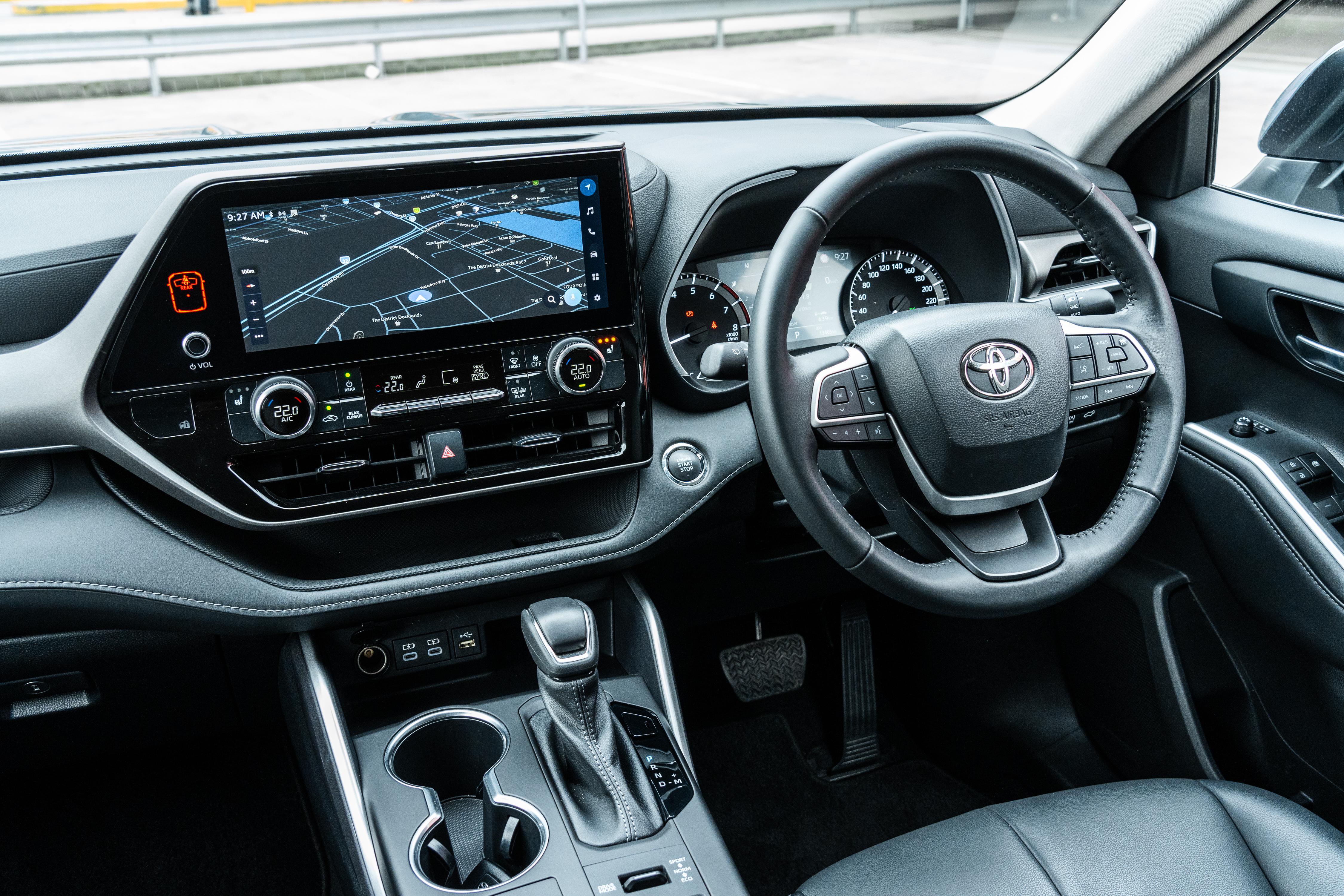 The overall look and feel of the Kluger is cheaper, which is not surprising for a base-level variant and considering its age, and the fact you have to jump all the way to the Grande to get things like a head-up and leather seat trim. Navigation and electric seat adjustment are also missing from the Toyota.