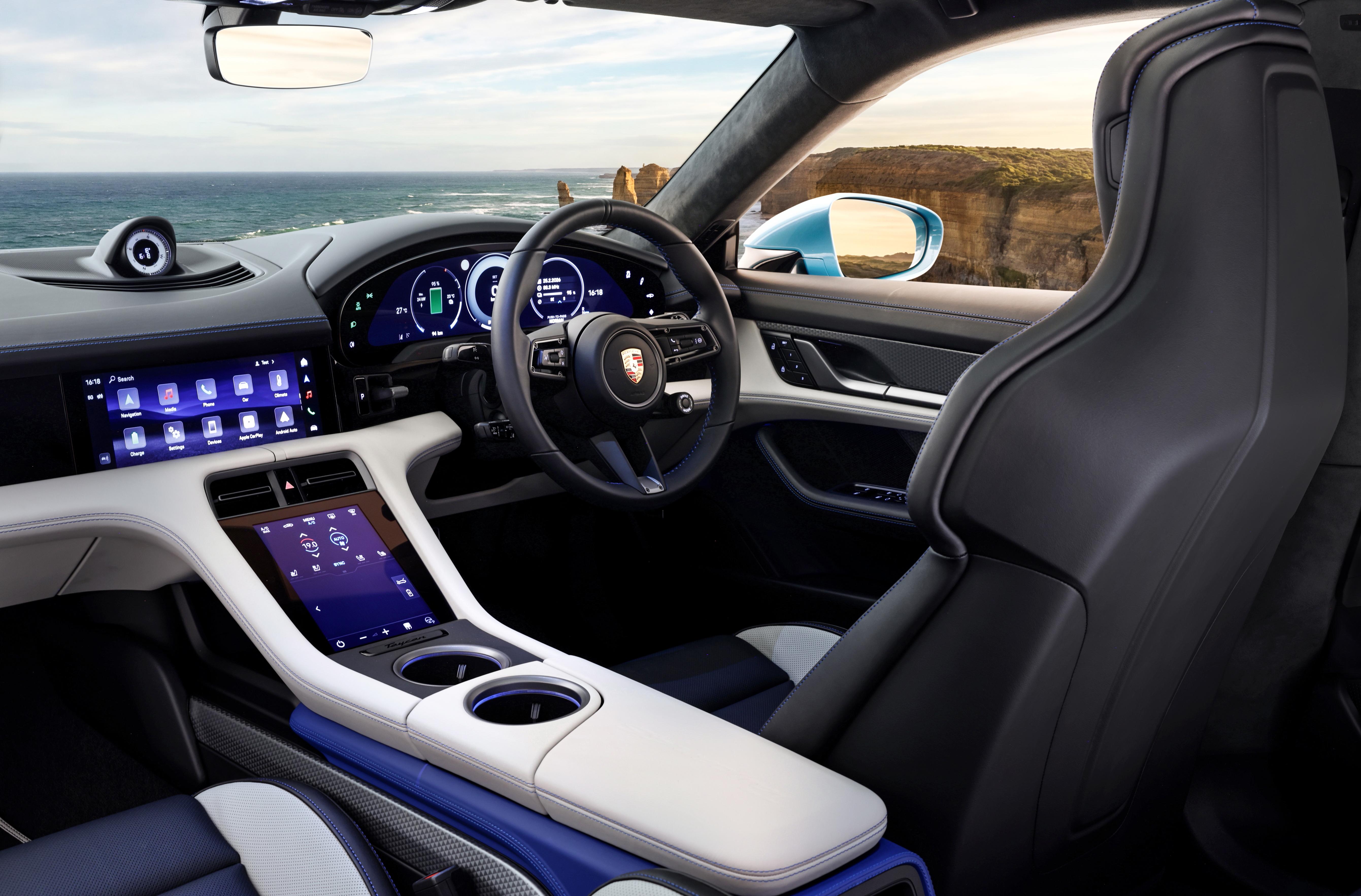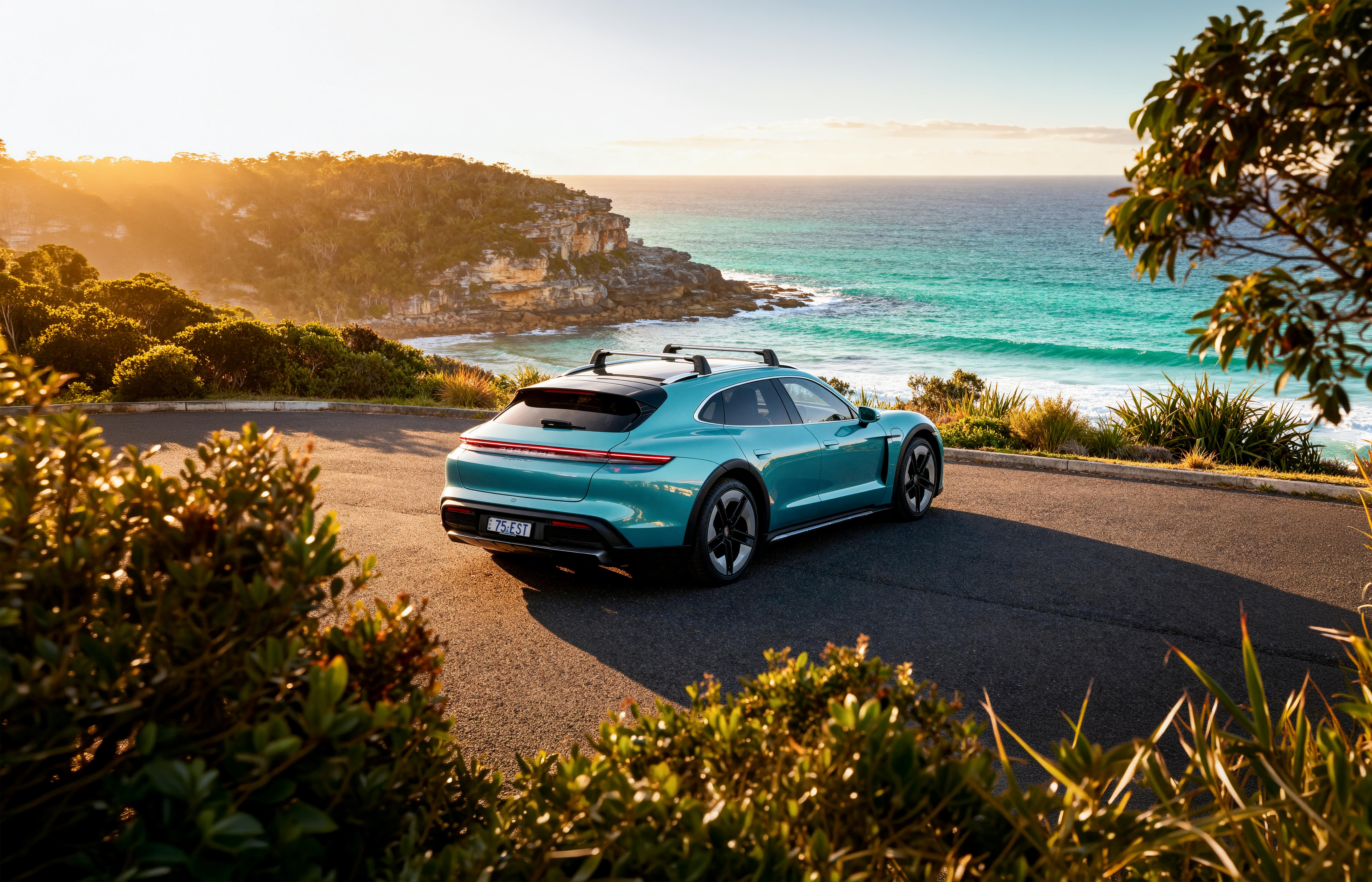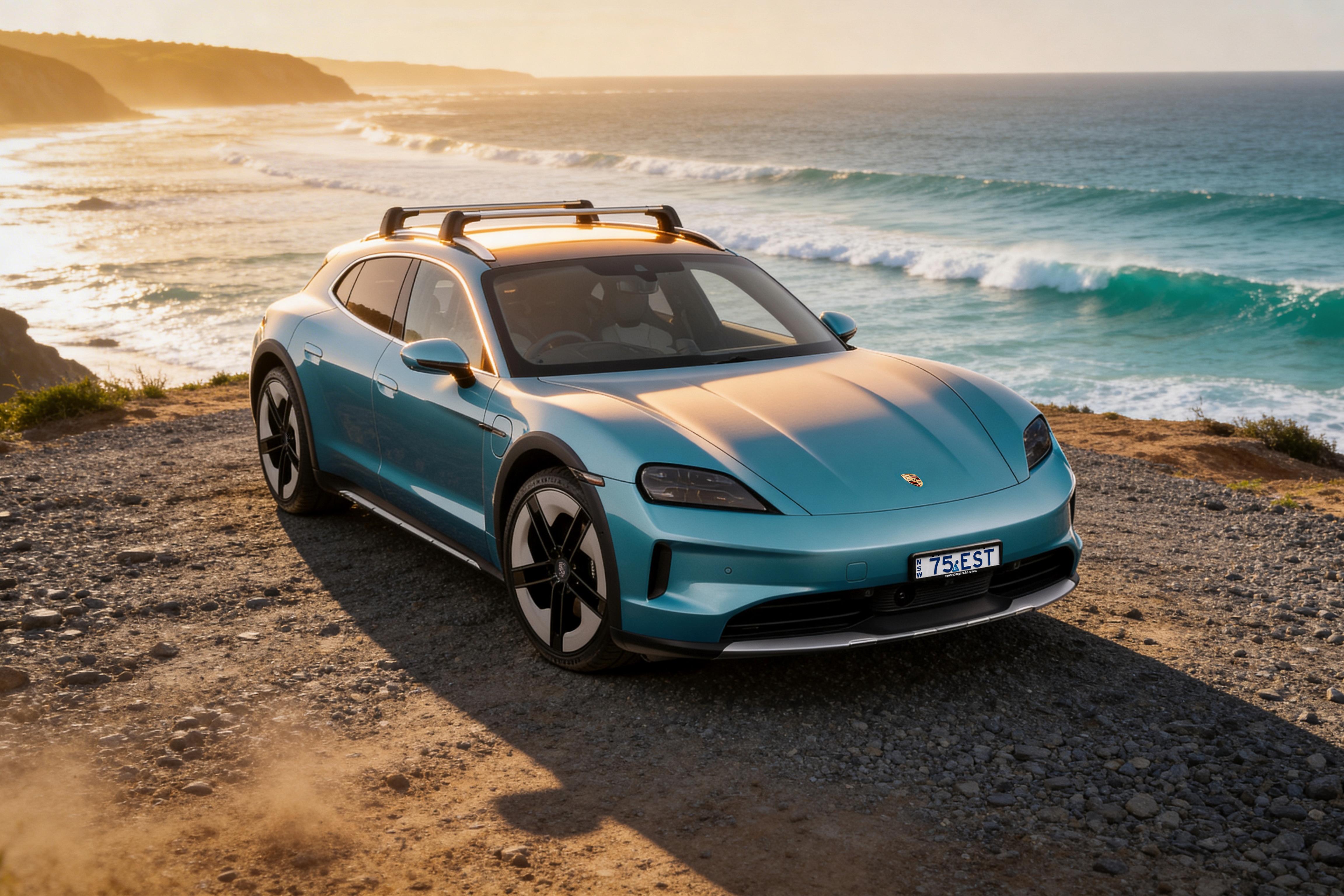 Inspired by Australia’s eastern coastline, the commemorate all-electric Porsche Taycan 4S Cross Turismo is finished in Paint to Sample Ipanema Blue Metallic.