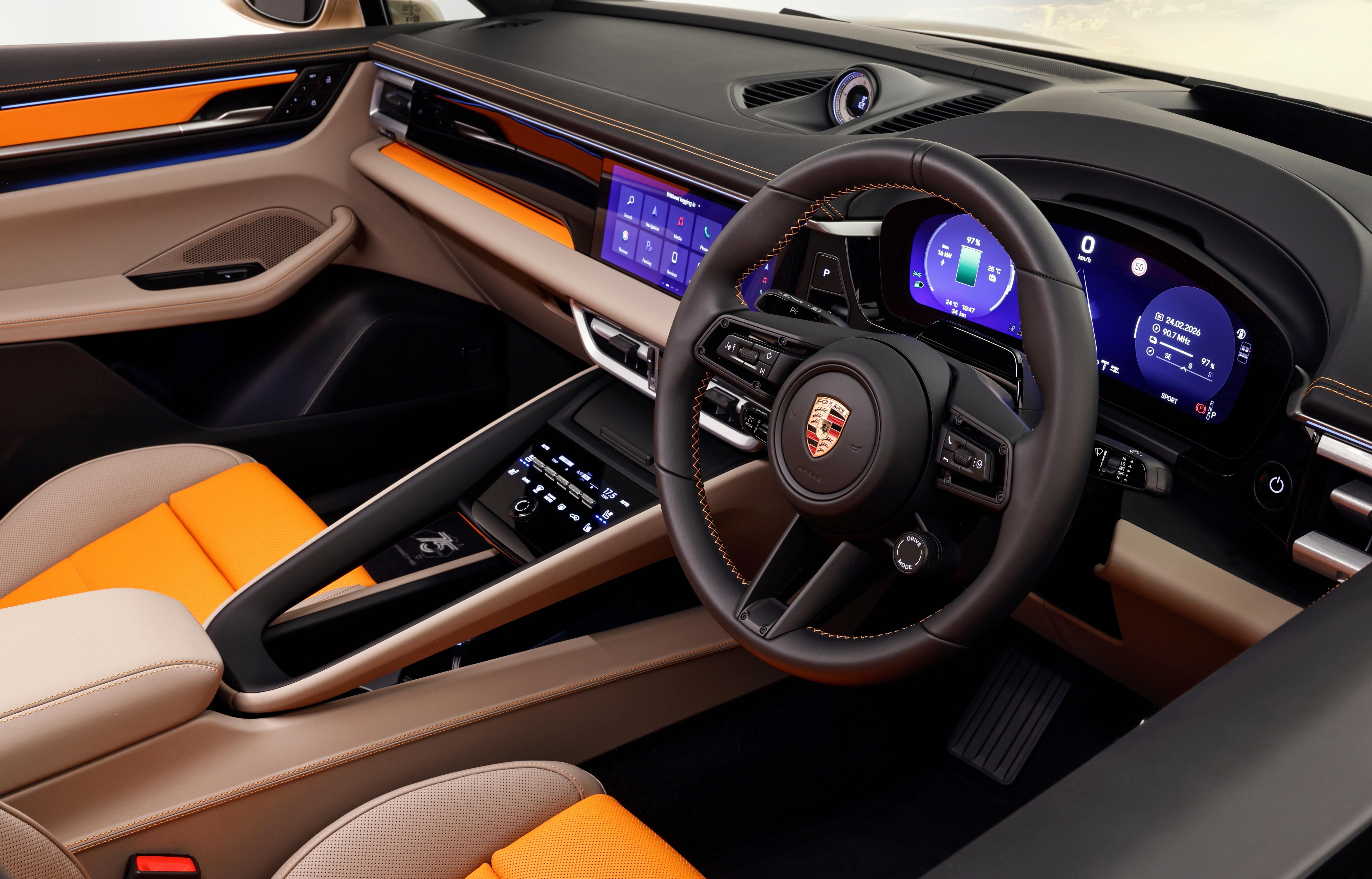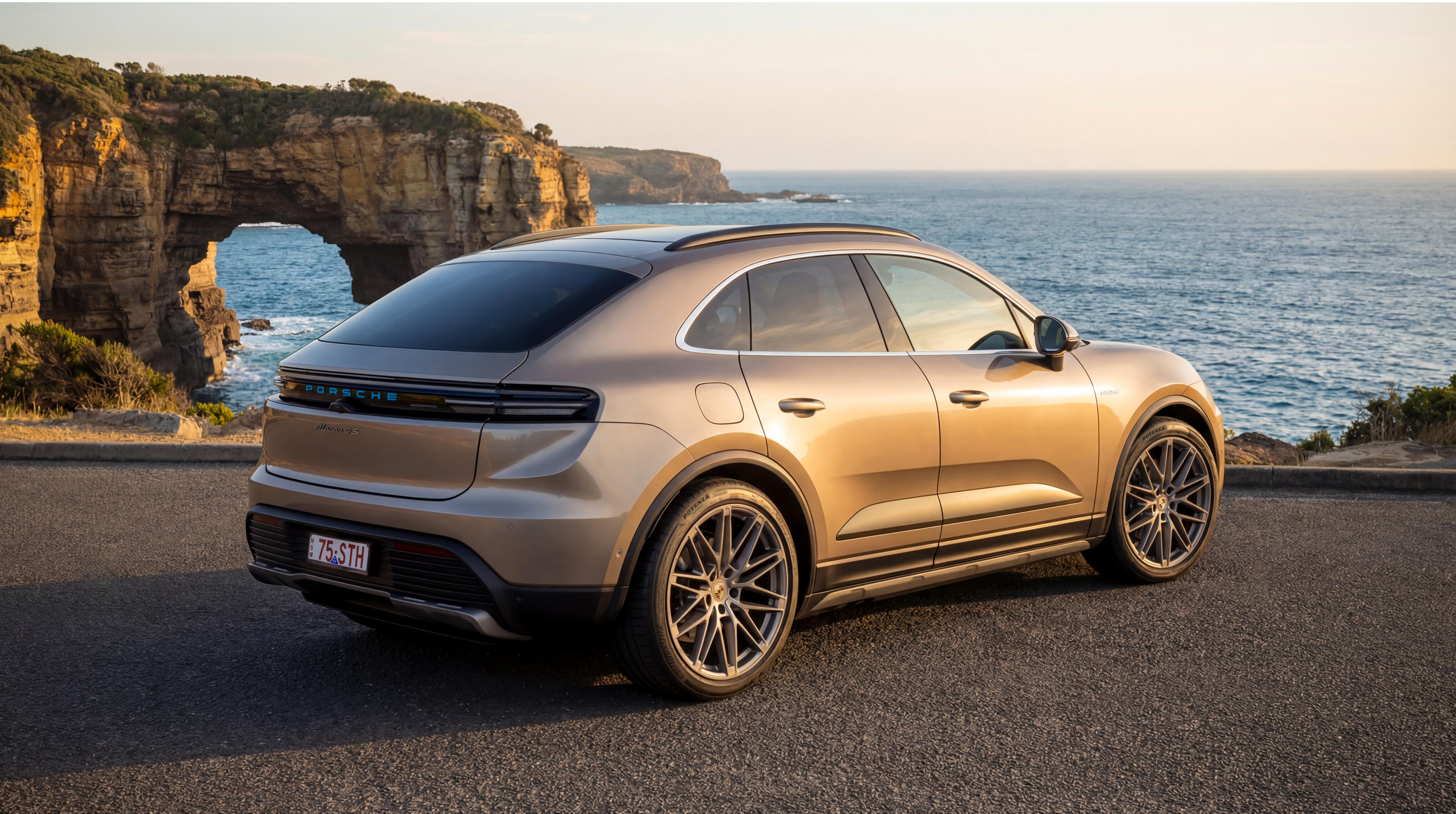 Paint to Sample Gold Bronze Metallic over Vesuvius Grey 22-inch RS Spyder Design alloys headline this commemorative Macan 4S Electric, inspired by the “ragged coastline of southern Australia”.