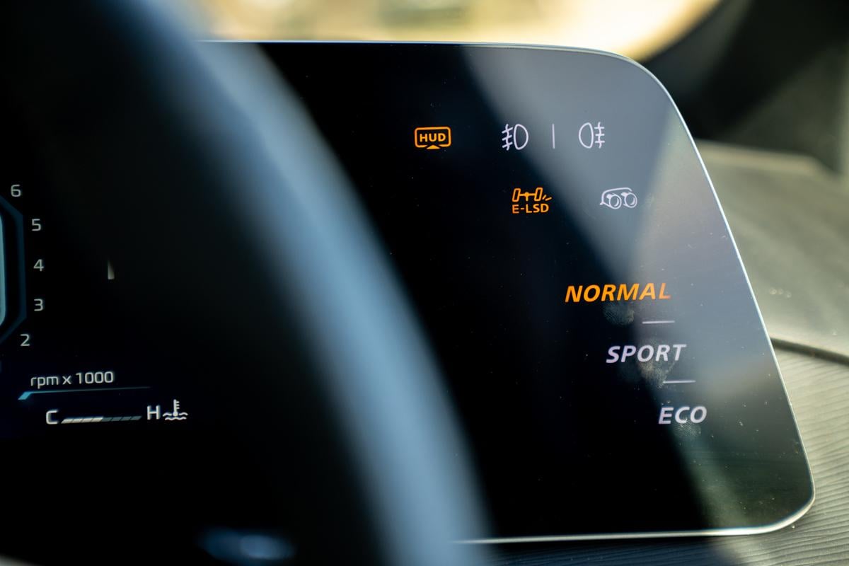 As mentioned previously, the powertrain and chassis can be tailored through various modes – Normal, Sport and Eco – via the touchscreen on the side of the instrument cluster, and the most aggressive X Mode is accessible via a button on the steering wheel.