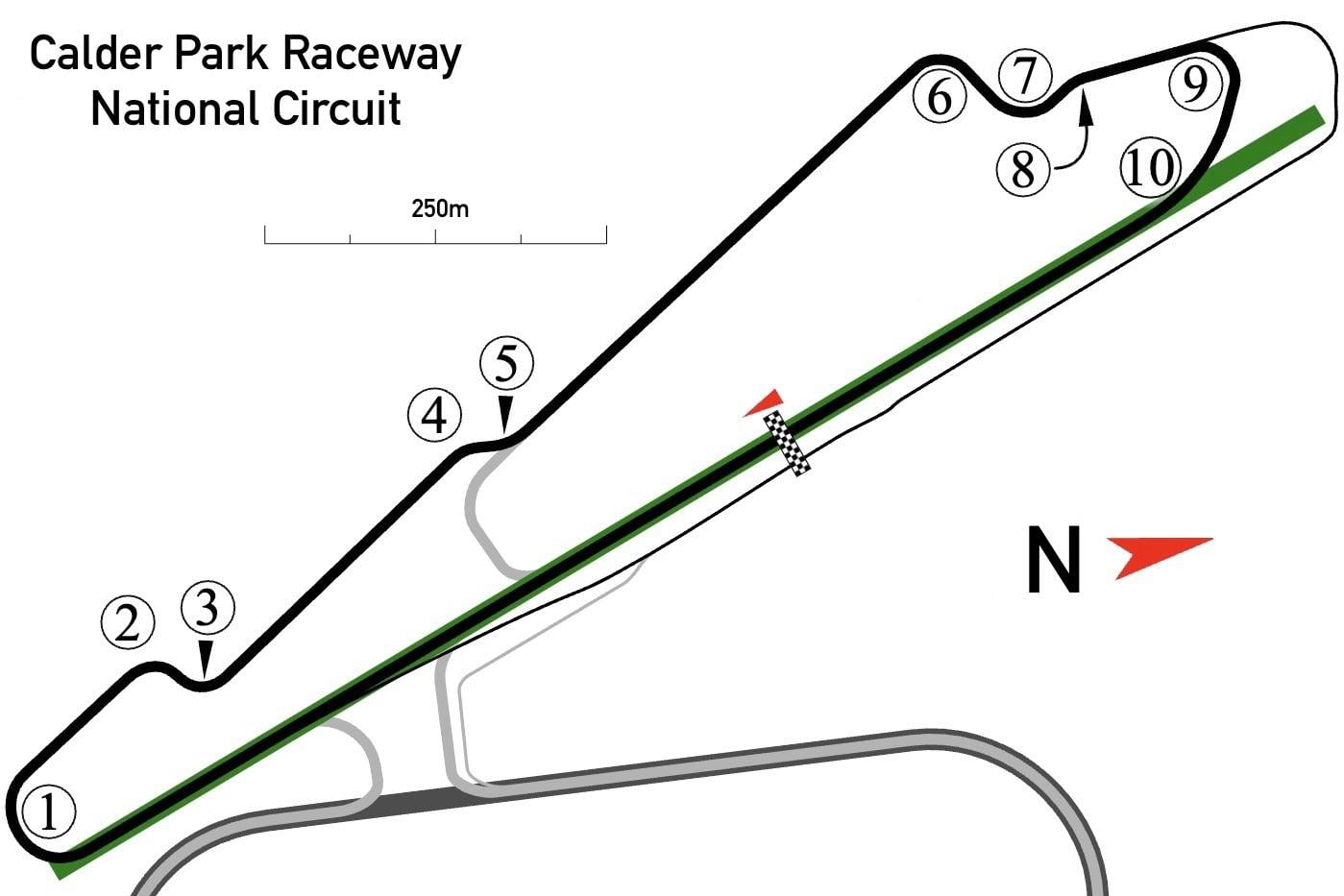The National Circuit has only existed since 1986, as it was created by extending the main straight of the existing Club Circuit to nearly 1km in total. The result is a 2.3km track with seven right-hand and three left-hand turns, with an official race lap record of 52.69 seconds set in 1986.